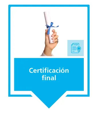 Sesiones online en vivo con profesores expertos. Formación asincrónica (videos y lecturas en campus)